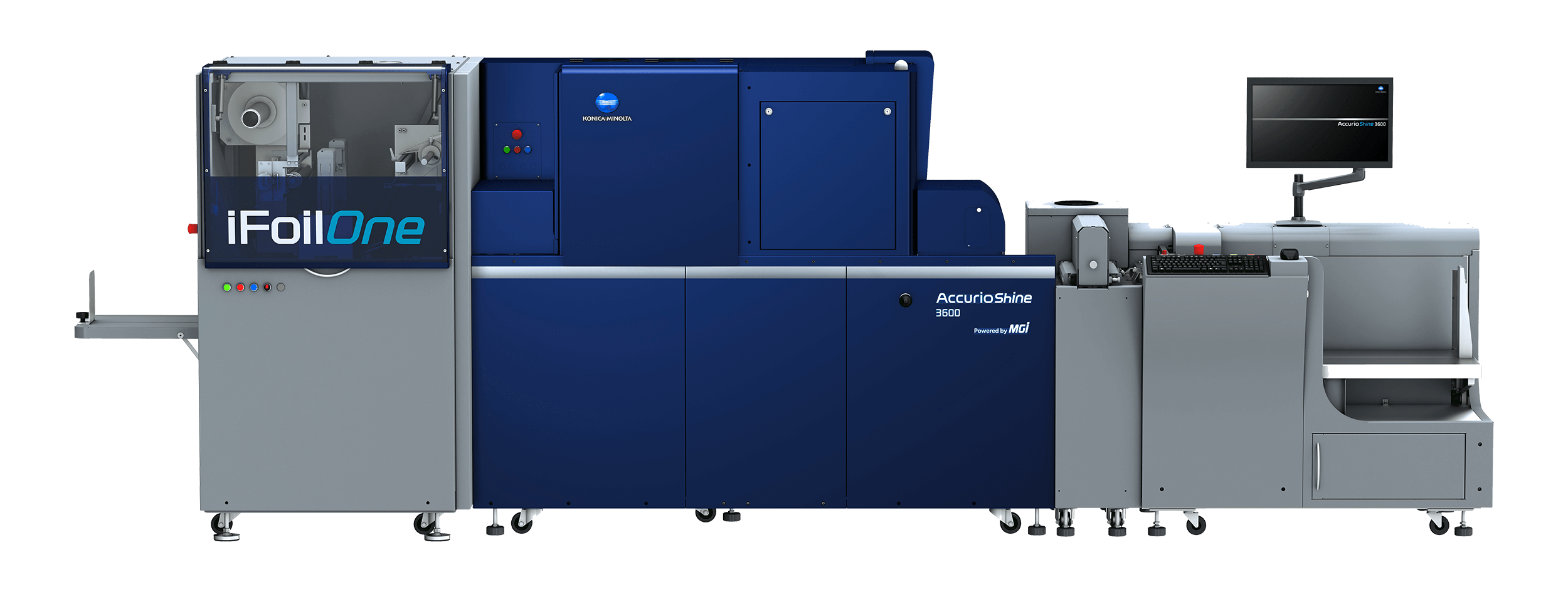 El AccurioShine 3600 de Konica Minolta con la opción iFoil One permite a los impresores satisfacer las exigentes necesidades de impresión actuales. El dispositivo permite el barnizado UV localizado en la propia empresa, desde la creación de prototipos hasta la producción completa, sin necesidad de pantallas, planchas o troqueles. El AccurioShine 3600 con iFoil One utiliza una tecnología innovadora para añadir efectos de brillo 2D y 3D, así como estampado en relieve 3D a un coste razonable sin los complicados pasos de los sistemas convencionales, lo que permite a los impresores una gama de efectos de acabado de alto impacto nunca vistos antes, como el estampado en relieve personalizado, al tiempo que aumenta los márgenes de beneficio.